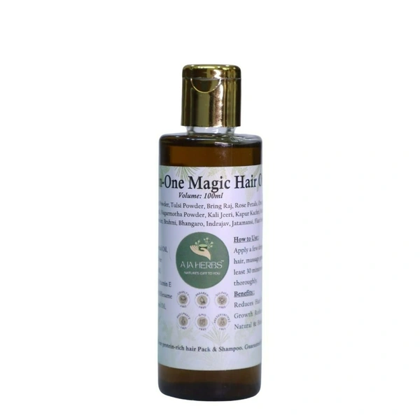 The All-in-One Magic Hair Oil is a meticulously crafted blend of natural oils and herbal extracts designed to address a multitude of hair concerns, including hair fall, dandruff, dryness, and damage. Suitable for all hair types, this oil nourishes the scalp and strengthens hair strands, promoting overall hair health.